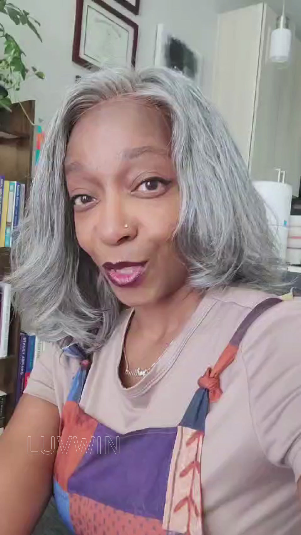 Luvwin Gray Color Hair Layered Style Wig Salt And Pepper Color With 5x5 Closure Lace